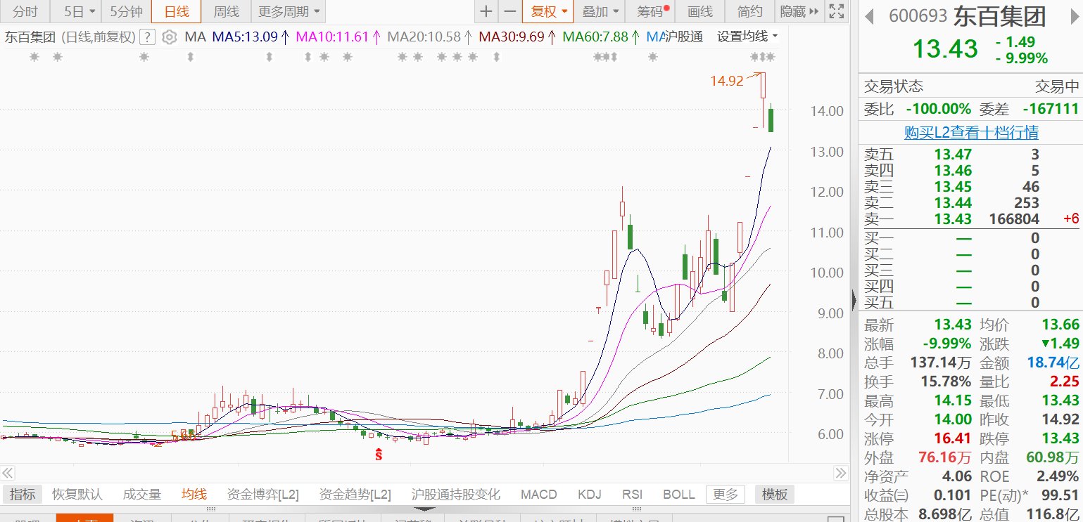 A股异动丨提示风险 东百集团午后跌停 此前涨停五连板