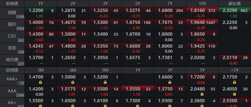 市场分析与观察视角 - 文章开篇引用观点,认为要识别市场拐点或调整的真伪,必须跳出每日涨跌,与市场多空双方保持距离,进行宏观审视 [1] 宏观经济与政策环境 - 央行公开市场操作净回笼资金,当日开展5亿元7天期逆回购,有2240亿元到期,净回笼2235亿元 [4] - 金融媒体解释央行连续两天进行5亿元地量逆回购操作,称此举并非收紧流动性,而是“一级交易商要多少我给多少”,意在打消市场对“收水”的疑虑 [7] 资金市场状况 - 银行间资金面均衡偏松,主要回购利率保持平稳,DR001在1.27%附近,DR007在1.41%附近 [4] - 隔夜回购(R001)加权利率为1.33%,成交70956.57亿元,占市场总成交量90.38% [5] - 7天回购(R007)加权利率为1.43%,较前日下降2个基点,成交6646.33亿元 [5] 地缘政治与市场情绪 - 特朗普讲话未释放停战或局势降温的增量信号,导致市场失望,油价随之反弹,股市和黄金价格走弱 [6][7] - 市场此前曾有演讲内容泄露版本指向结束战争,但最终讲话内容与之不同,引发市场猜测 [7] 债券市场表现 - 10年期国债(代码260005)收益率开盘于1.8175%,盘中震荡,收盘于1.8160%,较前日下行0.25个基点 [6][7] - 央行3月净买入国债500亿元,符合市场预期,对债市情绪构成支撑 [6] - 各期限利率债收益率涨跌互现,10年期国债收益率收于1.8160%,10年期国开债收益率收于1.9640% [10] - 信用债方面,各评级债券收益率变化不一,AAA评级1年期信用债收益率收于1.5550% [10] 资产价格联动 - 受特朗普讲话影响,油价反弹,股市走弱,债市利率呈现震荡格局 [6] - 股市低开低走,与债市利率微幅下行形成对比 [6]