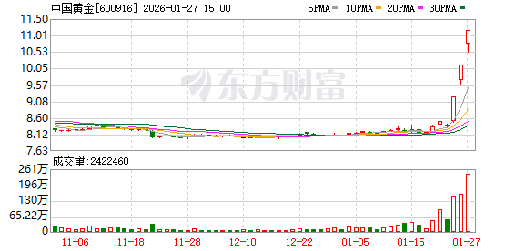 中国黄金(600916)1月27日公告,公司股票于2026年1月23日、1月26日连续两个交易日以涨停价收盘。 2026年1月27日公司股票再次涨停。公司股票交易存在市场情绪过热情形,可能存在短期涨幅较大后的 下跌风险。公司主营业务未发生变化,主要从事黄金珠宝首饰研发、加工、零售、批发及回购等,未拥 有探矿权、采矿权,敬请广大消费者理性决策,审慎投资。 来源:证券时报 ...