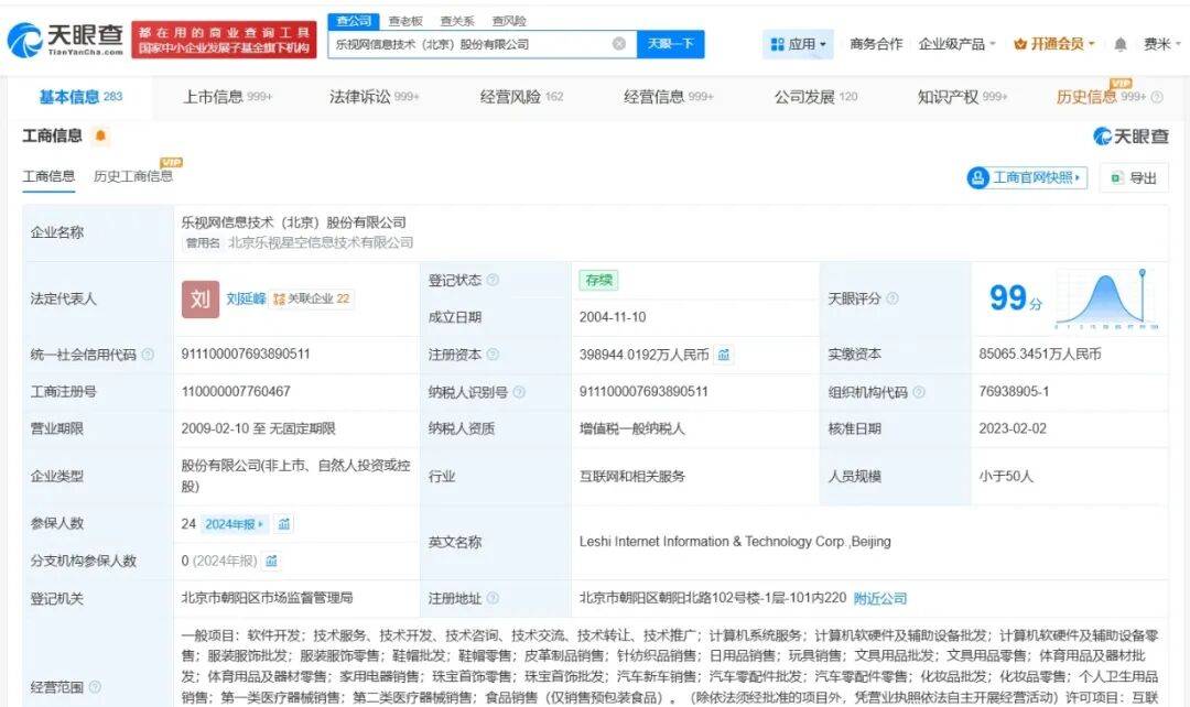 公司财务状况与法律风险 - 公司现存4条被执行人信息,被执行总金额超过1.1亿元,此外还存在多条失信被执行人(老赖)信息,涉案金额超过1.4亿元 [1][2] - 公司负债总额在2024年进一步升至近238亿元,而同期公司资产只有近19亿元,资产负债情况极为严峻 [1] - 公司旗下多家公司股权被冻结,包括东阳花儿影视文化有限公司、乐视网(上海)信息技术有限公司等 [3] 公司近期经营动态 - 公司于12月2日晚公告,拟利用不超过1.8亿元自有资金购买股票,以期获得额外的资金收益 [1] - 公司参保人数为24人(2024年报),人员规模小于50人 [4] 公司基本信息 - 公司全称为乐视网信息技术(北京)股份有限公司,成立于2004年11月10日,法定代表人为刘延峰 [1][4] - 公司注册资本约为39.9亿元人民币,实缴资本约为8.51亿元人民币 [4] - 公司由贾跃亭、刘弘、毕绍波等共同持股,企业类型为股份有限公司(非上市、自然人投资或控股) [1][4] - 公司所属行业为互联网和相关服务,经营范围广泛,包括计算机系统服务、软硬件批发零售、技术开发与服务等 [4]