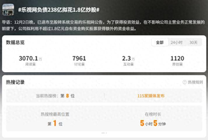 平均大涨近355%,乐视网1.8亿炒股,80%的钱押向“它”