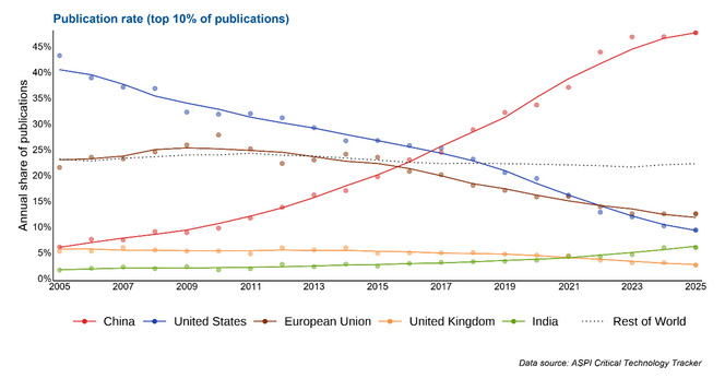 文章核心观点 - 澳大利亚战略政策研究所报告显示,在定义现代世界的多项关键技术中,中国占据主导地位,并在大多数领域领先世界其他地区,美国正逐渐丧失技术优势 [1] - 分析认为,中国已从追赶西方转变为被追赶的对象,其“工程型国家”特质和从目标倒推的产业政策模式是其取得领先的关键原因 [1][6][8] 关键技术领域领先地位 - 在报告追踪的74项关键技术中,中国在66项上领先,美国仅在剩余8项技术上保持优势 [1] - 人工智能领域:8项技术中,中国在7项上领先 [1] - 先进材料和制造技术:13项技术,中国全部领先 [1] - 国防、航天、机器人和交通运输:7项技术,中国均位居首位 [1] - 能源与环境领域:10项技术,中国领跑其中9项 [1] - 生物技术、基因与疫苗领域:9项技术中,中国在5项技术上领先 [1] 近期技术与工程成就 - 国防科技大学实验室展示了可用于战场侦察的蚊子大小仿生机器人 [2] - 横跨贵州的花江峡谷大桥建成通车,成为世界第一高桥 [2] - DeepSeek团队发布数学推理模型DeepSeekMath-V2,是首个能在国际数学奥林匹克竞赛上斩获金牌的开源AI模型 [2] - 第二十七届中国国际高新技术成果交易会展示了人形机器人、无人机和电动垂直起降飞行器等先进设备 [2] 产业政策与投入模式 - “十四五”以来,中央企业在战略性新兴产业领域累计投资达8.6万亿元人民币 [6] - 分析将中国描述为“工程型国家”,专注于用务实高效的行动力解决问题和创造未来,与美国依赖法律手段的“律师型社会”形成对比 [6] - 中国的创新模式被描述为:先确定技术目标,然后倒推并资助所需的基础和应用研究,再将成果转移给企业进行商品化和规模化 [6] - 国际合作倡议“工业转型加速器”执行董事指出,中国加速的速度是世界其他地方前所未见的 [8] 国际对比与影响 - 澳大利亚近期推出的“国家人工智能规划”计划投资3000万澳元(约1.4亿元人民币)用于AI安全,另有4.6亿澳元(约21.5亿元人民币)用于AI及相关项目,但被评论认为其产业政策较为简陋 [7] - 评论认为,中国已经强大到不可轻视,并且逐渐掌握了现代世界的关键,西方未来可能难以追上中国 [8]