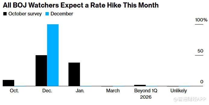 这是日本央行自今年1月以来的首次加息。由于在此前两次会议上已有两名委员公开呼吁加息,市场预 计本次决议有望以全票通过。若成行,这将是行长植田和男任内首次在加息问题上获得董事会一致支 持。 本月早些时候,植田和男罕见地释放出明确的加息信号,随后一系列经济数据进一步巩固了市场预期。 数据显示,日本工资增长动能依然稳固,同时美国关税对日本经济的冲击小于此前担忧。这也是植田上 任以来,媒体调查中所有日本央行观察人士首次一致预测将加息。 在加息几乎被视为"板上钉钉"的背景下,市场关注焦点转向日本央行将如何描绘未来的利率路径。知情 人士此前透露,即便利率上调至0.75%,日本央行内部仍认为政策利率未达到所谓的"中性利率",部分 官员甚至认为1%的水平也仍偏低。中性利率通常被定义为既不刺激也不抑制经济增长的利率水平。 通常而言,加息有助于提振日元汇率,但由于本次行动已被市场充分计价,若央行在前瞻指引中释放偏 鸽派信号,反而可能令日元走弱。一旦汇率再度逼近每美元160日元这一关键关口,金融当局可能被迫 重新考虑入市干预。 智通财经APP获悉,日本央行周五料将把基准利率上调至三十年来最高水平,显示出决策层对实现稳定 通胀目标的 ...