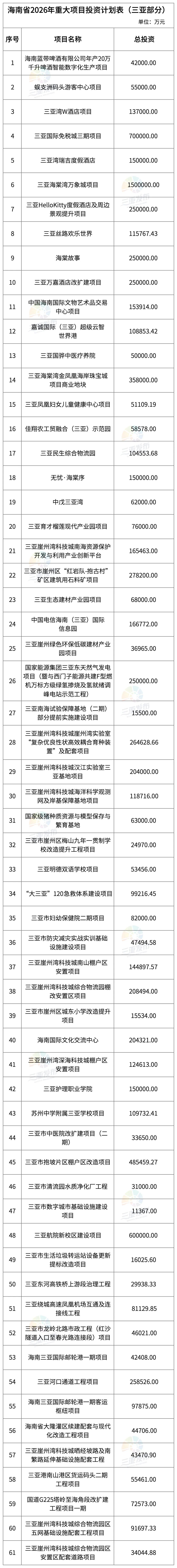 海南发布2026年重大项目投资计划!涉及三亚的有……