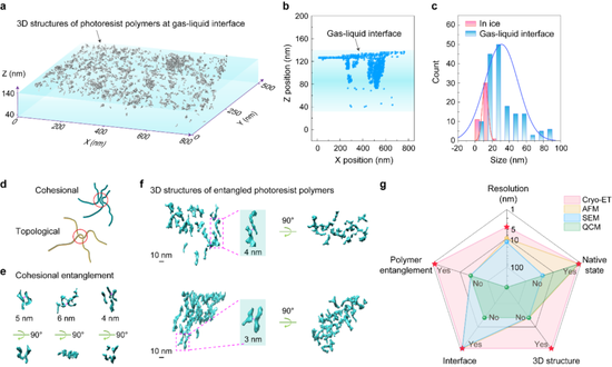 我国芯片领域取得新突破。 近日,北京大学化学与分子工程学院彭海琳教授团队及合作者通过冷冻电子断层扫描技术,首次在原位状态下 解析了光刻胶分子在液相环境中的微观三维结构、界面分布与缠结行为,指导开发出可显著减少光刻缺陷的产 业化方案。 光刻是整个集成电路制造过程中耗时最长、难度最大的工艺,光刻胶则是光刻过程最重要的耗材,对光刻工艺 有着重要影响。随着中国半导体厂商的强势崛起以及下游需求的扩大,光刻胶的市场规模持续增长,据锐观产 业研究院报告,2024年我国光刻胶市场规模增长至114亿元以上,KrF光刻胶等中高端产品国产替代进程加 快,预计2025年光刻胶市场规模可达123亿元。 重大突破 为破解难题,研究团队首次将冷冻电子断层扫描技术引入半导体领域。他们在晶圆上进行标准的光刻曝光后, 将含有光刻胶聚合物的显影液快速吸取到电镜载网上,并在毫秒内将其急速冷冻至玻璃态,"定格"光刻胶在溶 液中的真实状态。 随后,研究人员在冷冻电镜中倾斜该样品,采集一系列倾斜角度下的二维投影图像,再基于计算机三维重构算 法,将这些二维图像融合成一张高分辨率的三维视图,分辨率优于5纳米。这种方法一举解决了传统技术无法 原位、三维、高分辨 ...