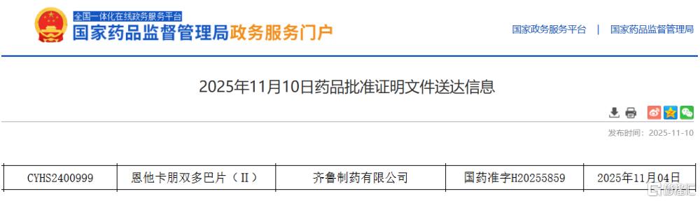 药品获批与市场格局 - 齐鲁制药的恩他卡朋双多巴片(Ⅱ)于11月10日获批上市并视同通过一致性评价 用于治疗伴有剂末运动功能波动的成人帕金森病患者[1] - 该药品市场表现亮眼 2024年全终端医院销售额接近2亿元 同比增长18.39% 2025年上半年销售额突破1.2亿元 同比增长41.11%[5] - 市场形成原研1家+国产2家竞争格局 石家庄四药于2024年8月获批国内首仿 齐鲁制药为国内第2家获批[8] 公司研发实力与产品管线 - 齐鲁制药今年以来已有26款品种获批并过评 其中包括5款国内首家过评品种 如枸橼酸伊沙佐米胶囊和伊布替尼片等[11] - 此次获批进一步丰富了公司的产品线 提升了市场竞争力[11]