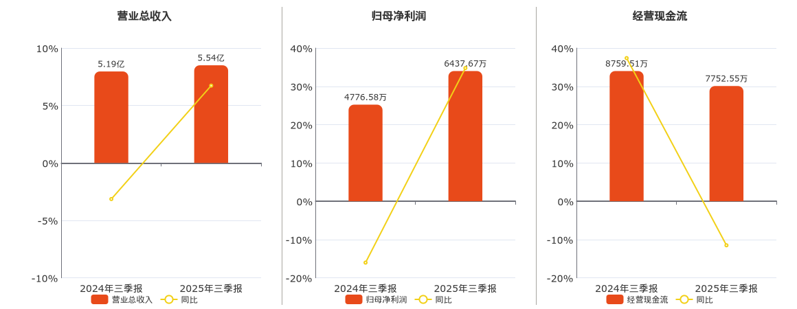 财务表现 - 2025年第三季度公司营业总收入为18.89亿元,较去年同期下降1.01% [1] - 归母净利润为2.51亿元 [1] - 经营活动产生的现金流量净额为1.55亿元,较去年同期大幅下降48.42% [1] - 公司毛利率为56.80%,较上一季度下降1.27个百分点 [3] - 摊薄每股收益为0.30元 [3] 盈利能力与效率 - 公司净资产收益率为6.22% [3] - 总资产周转率为0.35次 [3] - 存货周转率为2.06次 [3] 资本结构与股东情况 - 公司资产负债率为20.16% [3] - 股东总户数为7.29万户 [3] - 前十大股东合计持股2.82亿股,占总股本比例为33.24% [3] - 主要股东张玉冲和张玉立各持股10.91% [3]