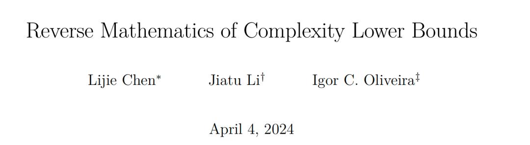 清华姚班大神,再度引爆理论计算机科学圈! 50年来,顶尖科学家都在死磕「旅行商问题」等这类计算机复杂性难题,却迟迟没有进展。 为什么一直证明不出来? 实际上,答案藏在了「元数学」的领域。 恰在去年,一篇名为《Reverse Mathematics Below the Turing Jump》论文低调上线。 作者仅有三个人,清华姚班陈立杰、本科生李嘉图,以及著名计算机领域学者Igor Carboni Oliveira。 论文地址:https://eccc.weizmann.ac.il/report/2024/060/ 他们不再死磕从公理推导定理的传统路径,而是另辟蹊径,采用了「元数学」中「逆向数学」的方法。 结果惊喜地发现,许多看似风马牛不相及的理论,竟在底层逻辑中是完全等价的。 这也让他们越来越多地开始琢磨一个相关但更让人摸不着头脑的问题:为啥证明老是不成功呢? 比如,「鸽巢原理」与图灵机的「回文下界」。 这篇论文一出,彻底颠覆了人们的「世界观」。 过去半个世纪,计算机科学家们苦苦追求「更强公理证明更难定理」的思路,原来从一开始就走偏了。 把数学「倒过来」 颠覆千年思维范式 一提到那些「硬骨头」难题,计算机科 ...