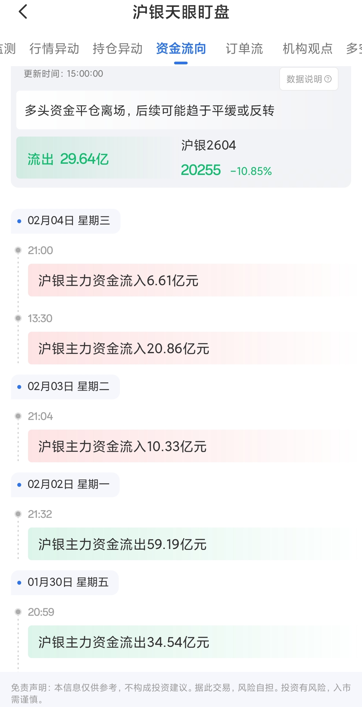 金投网APP沪银天眼盯盘系统功能概述 - 该系统是整合沪银期货实时行情、资金流向、持仓异动、订单流、行情形态检测、多空量比等多维度数据的免费智能盯盘系统 [1] - 系统支持个性化设置,设有独家盯盘功能,以满足不同用户需求 [1] 资金流向功能 - 功能用于实时监测各品种的资金流入流出情况,并在资金量发生显著变化时及时提示 [1] - 资金流入通常预示着市场的上行潜力,而资金流出可能预示着市场的下行压力 [1] 持仓异动功能 - 功能帮助用户及时了解市场持仓量的变化情况,持仓量变化反映多空竞争,价格变化揭示市场主导方 [5] - 系统在持仓发生显著变化时会提示关注,例如沪银主力合约在特定时间点出现增仓或减仓 [6] - 具体数据:2月3日21:46,沪银主力日内持仓增仓5.1%,报11421.0手;2月3日13:30,增仓4.7%,报10617.0手;同日10:57,减仓4.6%,报-10950.0手;10:47,减仓2.3%,报-5505.0手;09:01,减仓1.2%,报-2770.0手 [6] 实时订单流功能 - 此为特色功能,提供“鸟瞰视角”,将每个价位的主动买卖成交量生成订单轨迹 [7] - 功能可显示最大交易量价位和供需失衡点位,帮助透视多空博弈过程和市场供需变化,使主力资金动向一目了然 [7] 形态监测功能 - 功能对不同周期的行情K线进行深度解析,帮助洞悉市场整体走势,作为入市依据和机会切入点 [10] - 利用经典通道分析理论识别价格关键位置和运行通道,提供高位、低位或震荡区间的市场状态信息 [10] - 最近更新显示,在14:45,60分钟级别处于相对低位,根据行情周期性规律,当前可能处于上升通道阶段,趋势或能持续 [12] 多空量比功能 - 功能通过分析品种多头与空头真实成交数据,计算多空订单比,提供市场多空力量对比的详细信息 [15] - 多空量比是反映市场多空力量对比的重要指标,用于判断市场整体情绪和未来走势 [15] - 具体提示:2月3日13:30和21:30,沪银主力多单占比超过50%;同日21:00,空单占比超过50%;2月4日09:30,多单占比再次超过50% [17]