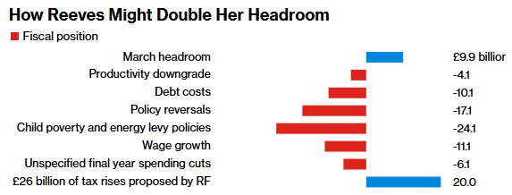 据知情人士透露,英国财政大臣雷切尔.里夫斯预计将于11月26日公布英国年度预算。对于基尔.斯塔默 领导的工党政府而言,这一事件的重要性愈发凸显。 知情人士透露,里夫斯预计将于周三公布支出计划出炉的具体日期。 这项年度大事对里夫斯来说将是一次严峻的考验。经济学家估计,她可能需要提高税收或削减开支高达 510亿英镑(680亿美元),以填补公共财政的黑洞,并恢复目前略低于100亿英镑的财政缓冲。 秋季预算案被广泛视为斯塔默和里夫斯的关键时刻。此前,他们实施了一系列不受欢迎的削减开支政 策,随后又出尔反尔,导致工党在民调中的支持率暴跌,他们的个人支持率也大幅下降。他们面临的挑 战是修复英国脆弱的公共财政状况,同时安抚公众、金融市场以及议员。 自四月以来,英国民意调查显示改革党领先工党 政策的突然转变,例如撤销削减养老金领取者冬季燃料补贴的计划,以及取消削减残疾人补贴的计划, 都加大了里夫斯必须填补的公共财政缺口。借贷成本上升以及英国国债收益走高也加剧了里夫斯面临的 挑战。 与此同时,英国预算责任办公室预计将下调生产率预测,这也将导致英国经济增长预测下调,进一步给 里夫斯的预算计算工作带来困难。 凯投宏观周二表示,里夫 ...