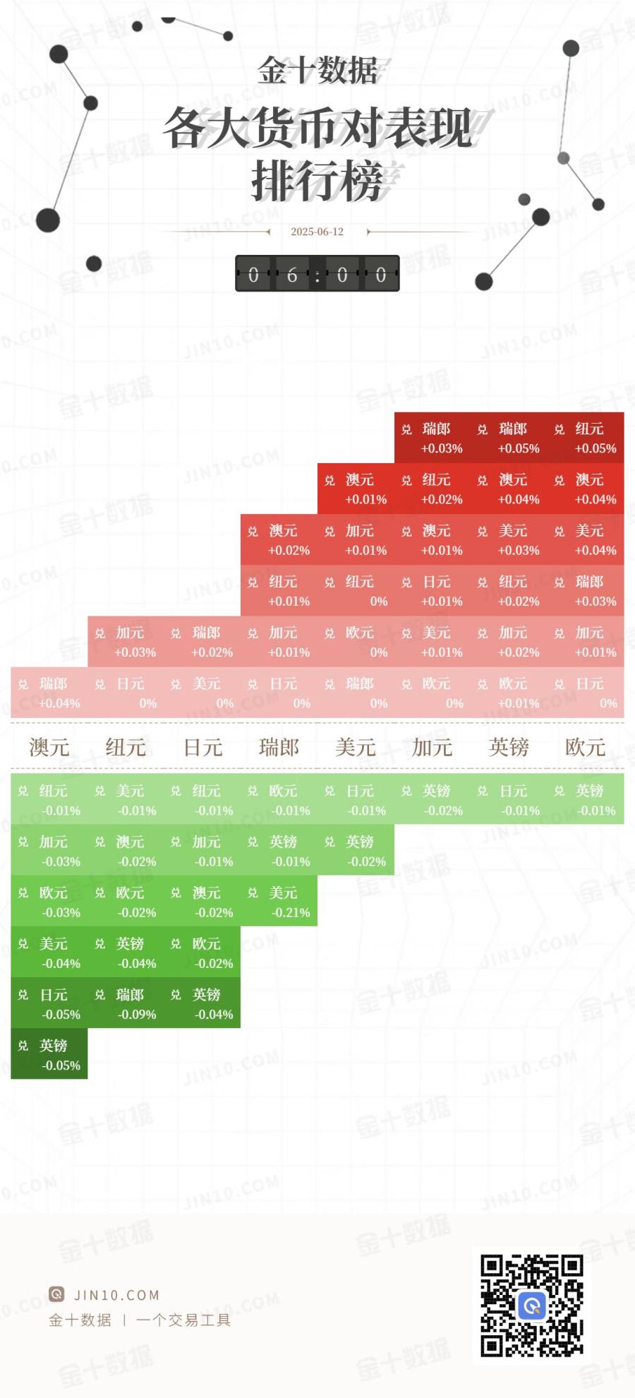 金十图示:2025年06月12日(周四)各大货币对表现
