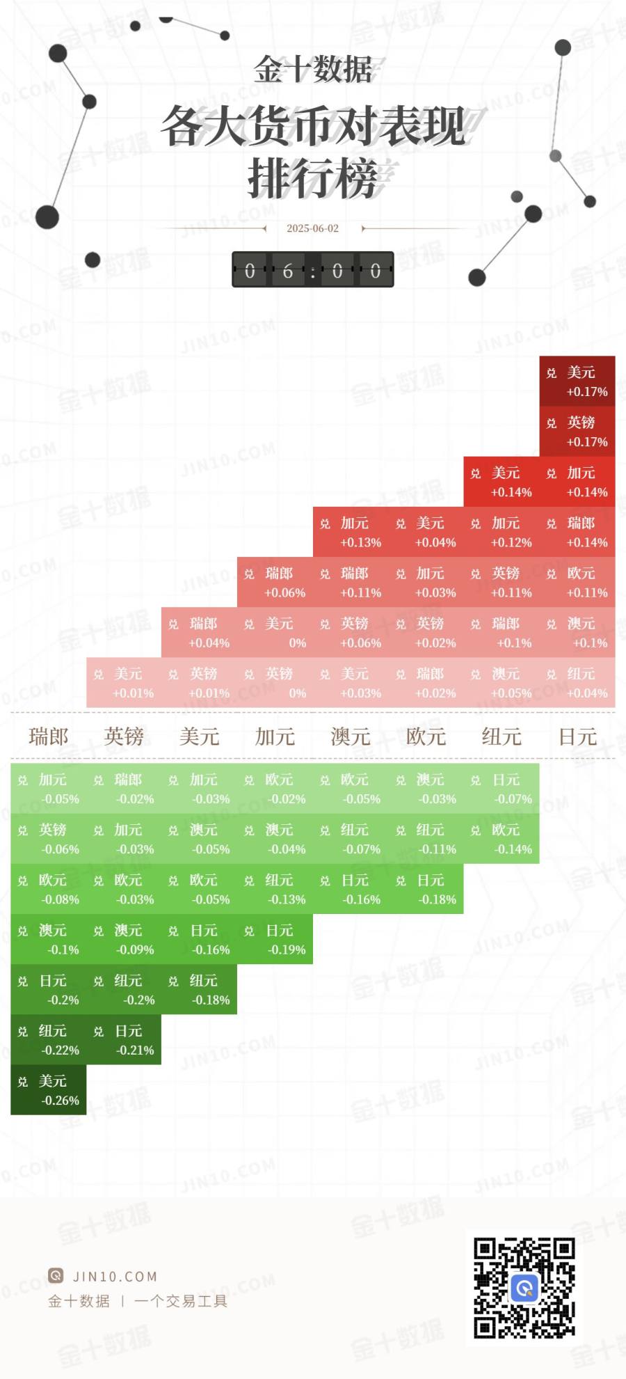 金十图示:2025年06月02日(周一)各大货币对表现