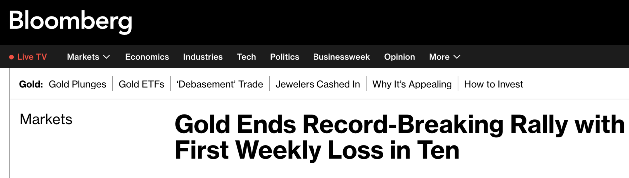 外媒:黄金创纪录涨势落幕,十周以来首现周度跌幅