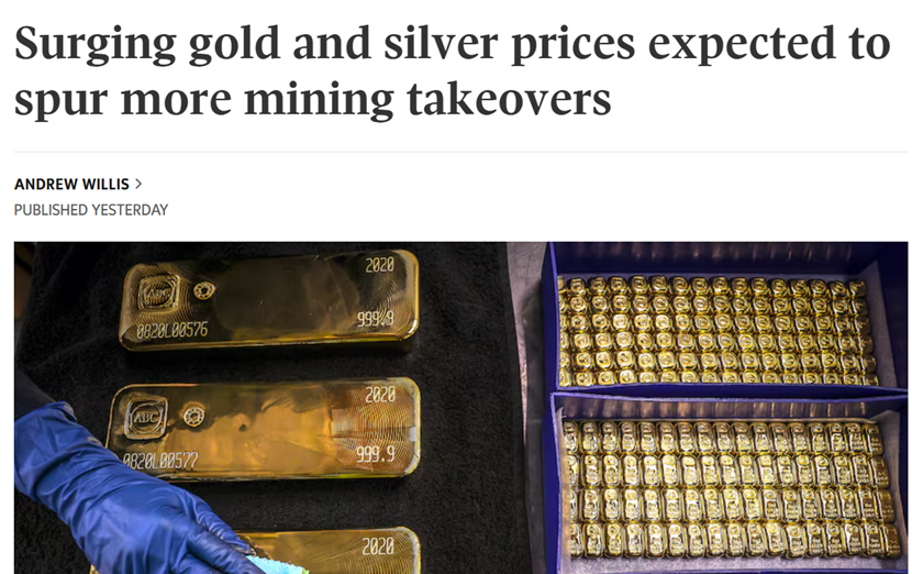 【环球网财经综合报道】北京时间1月29日凌晨,国际贵金属期货普遍收涨,COMEX黄金期货涨6.46%报5411.00美元/ 盎司,COMEX白银期货涨10.06%报116.62美元/盎司。分析人士称,美联储暂停降息但释放未来宽松预期,叠加市场 对鸽派美联储主席人选的押注,推动贵金属避险及抗通胀属性凸显,同时芝商所调整部分贵金属期货保证金参数也可 能加剧短期波动。 伴随着贵金属、有色金属行情持续爆发,A股市场上贵金属和有色金属板块掀起涨停潮,截至1月28日收盘,白银有色 7连板,中国黄金4连板。全市场涨幅前十的ETF有9只为黄金股和有色相关ETF,其中3只黄金股ETF涨停。 《环球邮报》发文称,预计在金价和银价上涨的推动下,大型黄金和白银开采商将与股东分享红利,并利用现金收购 矿产,继续进行快速的并购活动,以增加储备和地理覆盖面。Scotiabank分析师Tanya Jakusconek预计:"随着金属价格 每盎司上涨100美元,运营商的利润将提高90美元/盎司。" 值得关注的是,在贵金属行情愈演愈烈的同时,期货交易所则打出收紧风控的"组合拳"。上金所日前宣布,自1月30 日收盘清算时起,Ag(T+D)合约保证 ...