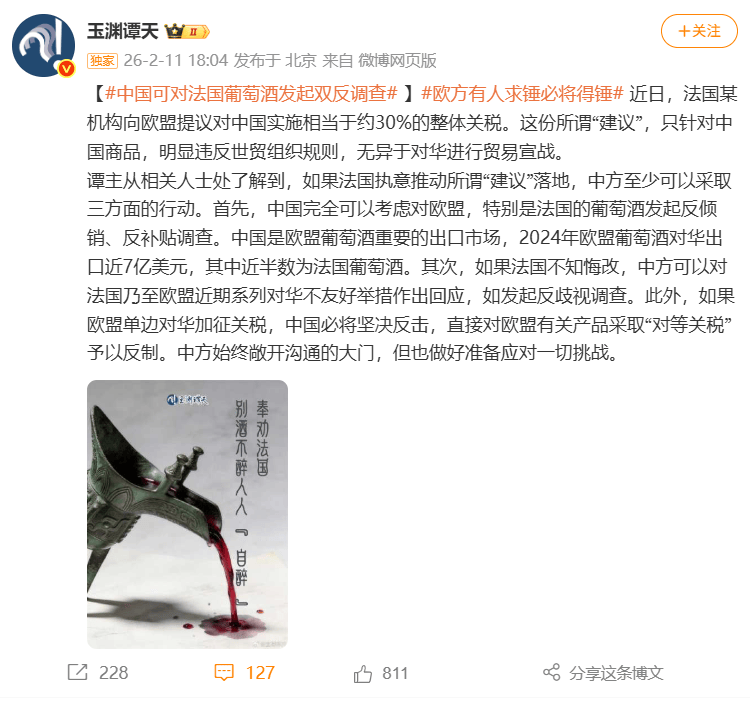 玉渊谭天:奉劝法国别酒不醉人人自醉