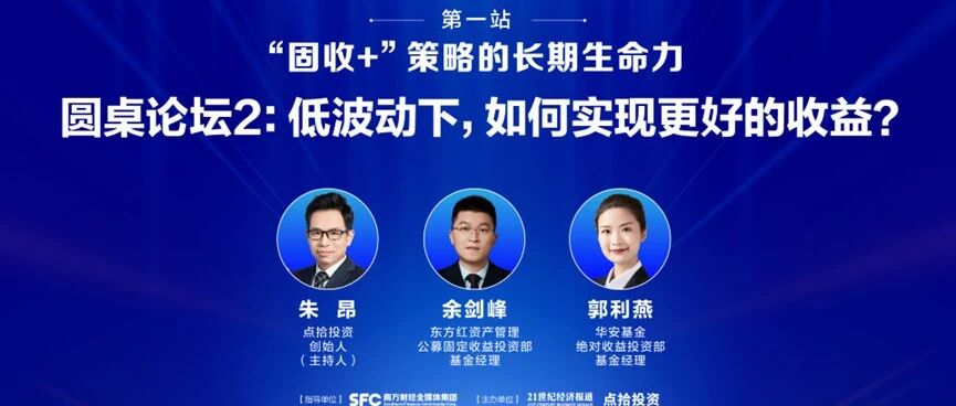 本文为圆桌对话实录,希望能为投资者理解"固收+"策略、优化资产配置提供有利参考。 正文 01、严控回撤的两种路径: 导读:10月22日,点拾投资举办了"固收+"策略长期生命力的线下活动。此次活动,我们邀请到了多位业内"固收+"大咖 来到现场进行分享。在"低波动下,如何实现更好的收益"圆桌论坛环节中,我们邀请了来自东方红资产管理的基金经理 余剑峰和华安基金的基金经理郭利燕,共同探讨了如何在低波动的约束条件下,给客户带来更好的收益。 论坛中,两位嘉宾就如何在严控回撤基础上提供满意收益、如何避免"固收+"变"固收-"、投资方法论的构建逻辑、低利 率环境下"固收+"的投资前景等关键问题,分享了各自的前沿观点与实战心得。 模型化约束与精细化择券 朱昂:今年理财收益率整体下行,越来越多投资者希望通过低波"固收+"来增厚收益,但这类产品对回撤控制要求又极 为严格。如何在严格控制回撤的基础上,为客户提供相对满意的收益? 余剑峰 我管理的产品覆盖了公司内部分类为低波、中波和高波不同类型,投资框架是统一的,方法上偏学术。 在股债资产配置上,我们首先会为股票和债券各选一个基准指数。股票以往常用中证800或中证A500,债券一般用综 ...