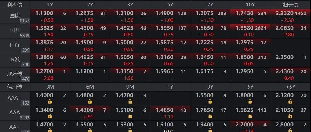 市场情绪与交易心理 - 投资者在持有多仓且市场上涨时,容易产生先平仓、等待价格下跌后再买回的冲动,尤其是在价格区间震荡且错过第一次最佳卖点后,市场给予第二次机会时 [1] 宏观经济与资金面 - 央行公开市场净投放40亿元资金,税期期间银行间资金面保持均衡宽松状态 [3] - 主要资金利率保持平稳,DR001位于1.22%附近,DR007位于1.33%附近 [3] - 银行间质押式回购市场数据显示,隔夜品种(R001)加权利率为1.29%,成交额达83,011.50亿元,占市场总成交量91.59% [4] - 7天期品种(R007)加权利率为1.39%,成交额为6,251.75亿元,14天期品种(R014)加权利率上行3个基点至1.41% [4] 大类资产表现 - 美伊谈判前景不明朗,导致股市呈现震荡微涨格局 [5] - 债市在股市微涨及税期资金面持续宽松的背景下,长债收益率出现明显下行 [3][5] - 匿名报价系统显示隔夜资金报价维持在1.2%,且供给规模达千亿级别 [5] 债券市场行情 - 10年期国债活跃券(260005)收益率开盘于1.756%,盘中震荡下行至1.743%,全天下行1.30个基点 [5][9] - 另一10年期国债活跃券(250220)收益率收盘于1.8578%,下行0.12个基点 [9] - 30年期国债活跃券(260002)收益率收盘于2.2320%,大幅下行2.30个基点 [11] 投资行为与“资产年龄”叙事 - 有研究通过分析基金经理年龄与其第一大持仓数据,构建了“老登股/小登股”的叙事框架,并将其转化为直观的年龄指标 [5] - 以2019-2025年的茅台与宁德时代为例,其“资产年龄”呈现一路上升趋势,演绎了“年轻基金经理发掘→全市场追逐→年轻基金经理撤出→年长基金经理坚守”的周期轮回 [5] - 债券资产的“年龄”约在39-40岁,处于中位数水平,与通信、电子行业的“年龄”相近 [7] - 市场对不同“年龄”投资者的债券交易行为有形象描述:年长投资者风格稳健,偏好3-5年期债券;中年投资者心态活跃,偏好7-10年期债券;年轻投资者风格激进,偏好20-50年期债券 [7]