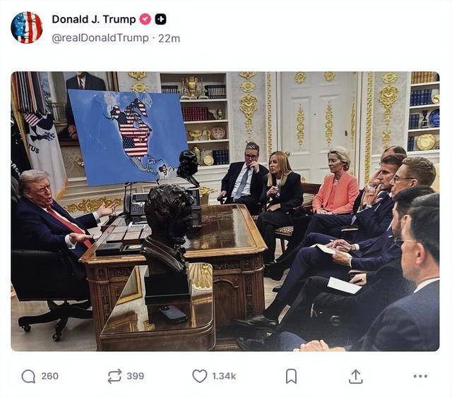 特朗普发了张图,加拿大、格陵兰和委内瑞拉都被涂上星条旗