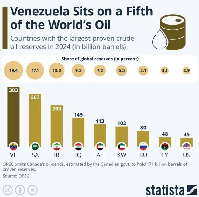 经常有人把委内瑞拉的衰退,怪罪于查韦斯上台后搞社会主义。 如果先天不足,后天再怎么努力,也很难。 委内瑞拉的石油,就是一个先天不足的资源。 提到石油富国,大家第一时间想到的肯定是沙特、阿联酋这些中东国家——靠卖石油赚得盆满钵满,国民福利好到让人羡慕。 可很少有人知道,全球已探明石油储量第一的国家,并不是中东的任何一个国家,而是南美洲的委内瑞拉。 我每次看到委内瑞拉的现状都觉得惋惜:明明手握全世界最丰厚的石油资源,却没能像中东国家那样靠油致富,反而长期陷入经济困境,老百姓 连基本的生活保障都成问题。 据Statista统计,委内瑞拉有约3000多亿桶的石油储备,占该资源全球总量的近五分之一。委内瑞拉的石油储量不仅多于石油王国沙 特,还差不多能达到美国的6.7倍。 这种"捧着金饭碗要饭,捧着油碗做饥民"的反差,背后藏着太多值得深思的道理。 今天就用通俗易懂的话,把委内瑞拉富不起来的核心原因说透,不管是想了解国际局势,还是关注资源与发展的关系,都能从中找到启发。 一、省流核心梳理:委内瑞拉的"资源困局" 第一,核心反差,委内瑞拉是全球石油储量第一大国,却长期陷入经济贫困,与中东石油富国形成鲜明对比; 第二,核心短板 ...