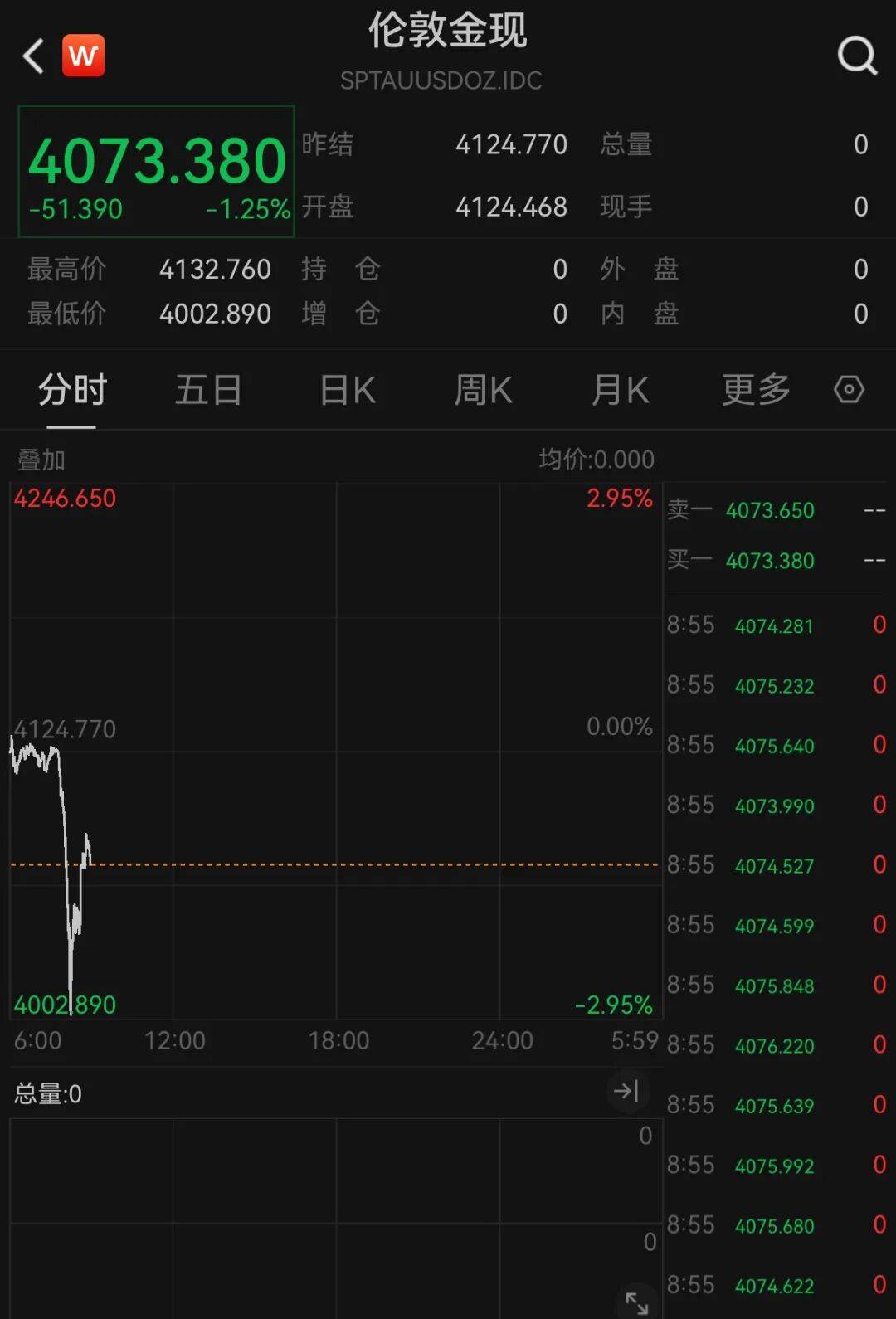 现货黄金急速跳水,跌幅一度超6%,创四年来最大跌幅