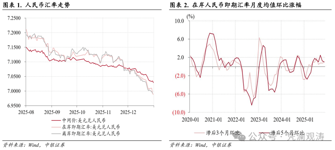 美元指数震荡回落,人民币汇率升值加快,但市场预期基本稳定 管涛 | 立方大家谈专栏作者 12月19日,国家外汇管理局发布了2025年11月外汇收支数据。现结合最新数据对11月份境内外汇市场运行情况具体分析如下: 11月份,美联储降息预期大幅摇摆,美元指数结束上月反弹态势,在99至100区间维持震荡,全月回落0.3%至99.4。当月,人民币汇率补涨行情延续:中 间价继续保持渐进升值态势,累计升值91个基点至7.0789比1;在岸即期汇率(境内银行间市场下午四点半交易价,下同)升值加快,累计升值341个基点 至7.0794比1,创2024年10月中旬以来新高;离岸汇率更是较上月末升值了511个基点至7.0713。人民币汇率重回"三价"合一:在岸即期汇率与中间价日均 偏离幅度由上月+0.4%降至+0.3%,离岸与在岸汇率延续强弱互现格局,日均偏离幅度由上月+39个基点转为-2个基点,表明市场预期整体保持基本稳定, 并未积累较强的汇率升值预期(见图表1)。 11月份,滞后3个月环比的即期汇率均值连续第九个月升值,涨幅为0.9%,为近四个月以来新高;滞后5个月环比的即期汇率均值则是连续第七个月升 值,且升值幅度均超1% ...
