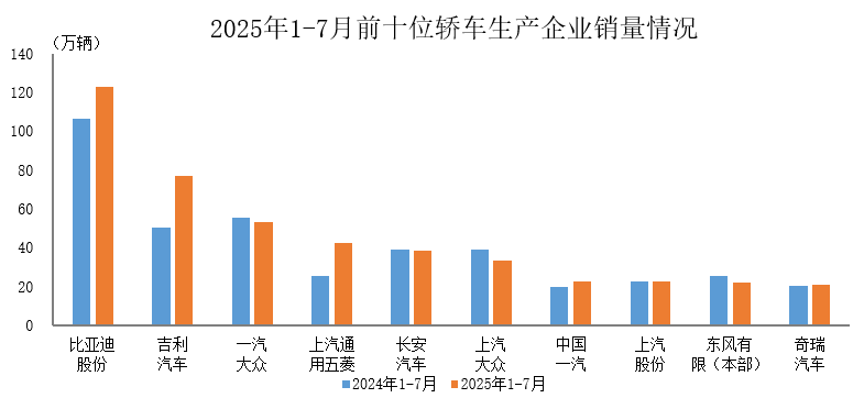 中汽协:前7月销量排名前十位的轿车生产企业共销售455.7万辆