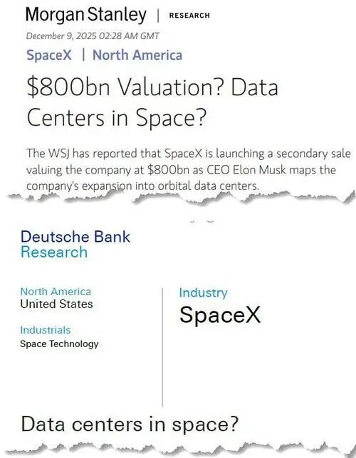 在SpaceX确认有意明年进行首次公开募股(IPO)据称寻求1.5万亿美元估值,以及马斯克强烈 支持在太空部署数据中心之后,连华尔街卖方机构也开始深入研究起了这一概念。 在SpaceX确认有意明年进行首次公开募股(IPO)据称寻求1.5万亿美元估值,以及马斯克强烈支持在太空 部署数据中心之后,连华尔街卖方机构也开始深入研究起了这一概念。 在过去一周,摩根士丹利和德意志银行仅相隔数日发布了两份几乎相同的研报。它们的核心结论是:虽 然实现该计划存在明显的技术挑战,但这些挑战更多似乎属于工程限制而非物理限制。此外,谷歌、 OpenAI和贝索斯的蓝色起源似乎都在探索实现途径,这一事实令分析师和科学家们备受鼓舞。 目前谷歌的"太阳捕手计划"正通过与Planet Labs合作,力争在2027年发射原型卫星。另据报道,OpenAI 的奥尔特曼曾考虑收购火箭公司Stoke Space,而谷歌前CEO埃里克·施密特则实际收购了Relativity Space ——部分动因正是他对太空数据中心的兴趣;蓝色起源团队也在该技术领域深耕了多年。 以下,不妨让我们深入剖析这项曾被视为天马行空的科幻构想将如何成为科学现实。为此我们摘录了德 ...