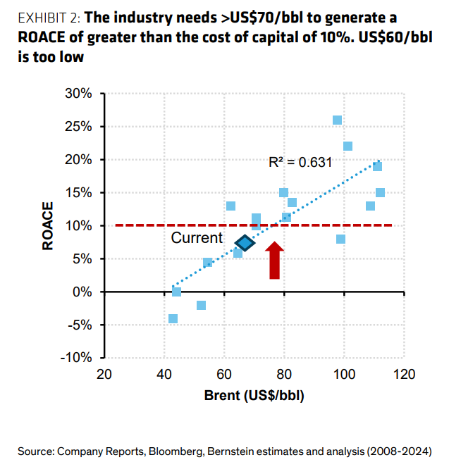 文章核心观点 - 当前原油市场存在巨大分歧:市场共识因短期供过于求而极度悲观,但长期基本面存在十个关键支撑,为逆向投资者提供了机会 [1] 市场现状与共识 - 市场看空理由:中国需求疲软、OPEC减产解除及非OPEC供应强劲增长,导致去年石油库存增加超过4亿桶(>100万桶/日) [1] - 市场共识大幅下调2025年油价预期,有分析师预测2026年布伦特原油将跌至61美元/桶 [1] - 当前布伦特原油5年远期价格为66美元/桶,低于行业长期边际生产成本71美元/桶 [5] 行业财务与资本状况 - 石油行业平均需要50-55美元/桶的油价才能实现盈亏平衡 [2] - 若油价维持在60美元/桶,行业资本回报率(ROACE)将仅为低至中个位数 [2] - 历史对比:2019年油价64美元/桶时资本回报率为6%,2024年油价平均81美元/桶时回报率为11% [2] - 行业过去100年平均资本回报率约为10%,当前低回报率导致资本正流出行业 [2] - 行业再投资率(资本支出与现金流之比)已从接近100%暴跌至约50% [17] 供应基本面 - 美国页岩油黄金时代终结:产量从2010年560万桶/天增至1350万桶/天,但主要盆地进入成熟期,增长触顶 [20] - 共识预期美国原油产量将与去年创纪录水平基本持平,钻机数量持续下降 [20] - 全球最大50家石油巨头探明储量寿命已从25年前的15年下降至11年 [17] - OPEC有效闲置产能回升至3.4%(略高于300万桶/日),仅回归历史平均水平,相当于伊朗产量 [11] 需求基本面 - 中国石油需求“黄金时代”结束:柴油需求因经济放缓下降,电动汽车占汽车总销量60% [8] - 经合组织(OECD)国家和中国需求可能见顶 [8] - “全球南方”(东南亚、印度、中东、非洲等50亿人口地区)人均石油消费量仅为西方一小部分,将成为未来十年需求增长新引擎 [8][9] - 中国战略石油储备(SPR)建设提供支撑:去年增加超1亿桶库存,预计今年再增1.5亿桶,目前储备约14亿桶,相当于112天进口覆盖量 [22] 外部与宏观因素 - 地缘政治风险指数处于9/11以来最高位,增加了供应中断概率 [12][13] - 弱势美元利好石油需求:美元指数与实际油价呈强负相关,弱势美元刺激新兴市场需求 [14] - 金属和材料价格上涨导致生产的边际成本增加 [5] 市场表现与投资机会 - 能源板块在过去11年中只有3年跑赢标普500指数,连续3年表现不佳 [18] - 能源股在标普500中权重从2011年12%暴跌至如今仅3% [18] - 当前高达60-65美元/桶的价格对行业不可持续,资本逃离是周期性底部的明确信号 [1] - 当资本回报率低于资本成本且资本开始撤离时,是投资者入场的最佳时机 [2] - 油价低于长期边际成本时,投资石油股票获得正收益的概率显著增加 [5]