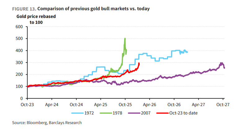 市场近期表现与调整性质 - 2026年初现货金价经历剧烈波动,从4300美元飙升至5600美元历史高位后,又大幅回落至4500美元下方,单日出现两位数跌幅 [1] - 华尔街主要机构认为此次调整是技术性回踩而非牛市终结,金价从高位回落约21%主要归因于短期投机头寸的“大清洗”和极致拥挤仓位的获利了结 [3] - 金价回落至4900美元后,其相对于巴克莱模型约4000美元的公允价值溢价已回归至合理标准差内 [3] 长期看涨的核心基本面驱动 - 宏观环境动荡持续为黄金提供支撑,包括地缘政治、关税政策、持续财政扩张以及对法币贬值的担忧 [5] - “财政主导”环境削弱美债避险属性,巴克莱指出美国CPI每上升1%,金价就有5%的内生上涨动力,在未来一年通胀预期3%背景下,金价仅凭“通胀漂移”就有15%的保底涨幅 [5] - 全球央行对“战略自主”需求达到前所未有高度,黄金作为“非政权信用资产”在储备中的地位正从“收益驱动”转向“生存驱动” [6] - 去美元化趋势下央行需求依然强劲,例如波兰央行计划将黄金储备从550吨提升至700吨,韩国央行也在考虑重新增持黄金 [21] 中国需求的强劲支撑作用 - 中国投资者成为全球贵金属市场的关键支柱,2026年1月中国黄金ETF增持量达94万盎司,按此速度年化增持量或将达1150万盎司 [13] - 中国投资者目前的买入黄金ETF强度可能是2025年(总增持量324万盎司)的三倍以上 [1][13] - 中国市场呈现“越涨越买”特征,高金价抑制珠宝消费但激发了更猛烈的实物金条、金币及黄金ETF投资需求,中国已成为全球黄金ETF净流入的最强引擎 [17] - 境内投资渠道有限导致资金涌入贵金属,某白银期货基金在2025年12月一度出现62%的惊人溢价,2026年1月溢价又迅速飙升至59% [15] 机构后市观点与目标 - 德意志银行坚定维持黄金6000美元/盎司的目标价,认为驱动因素依然积极 [22] - 瑞银预测4500美元附近将是强力技术支撑位,金价有望在未来几个季度重拾升势并刷新高点 [21] - 瑞银指出大部分长期机构投资者的黄金配置仍处于较低水平,价格回落为投资者提供了更具吸引力的长期战略建仓机会 [3][19] - 巴克莱认为黄金矿业股具有吸引力,指出自2023年10月以来的本轮牛市涨幅仅170%,而历史牛市涨幅可达200%-400%,矿企EPS动能尚未完全释放 [23]