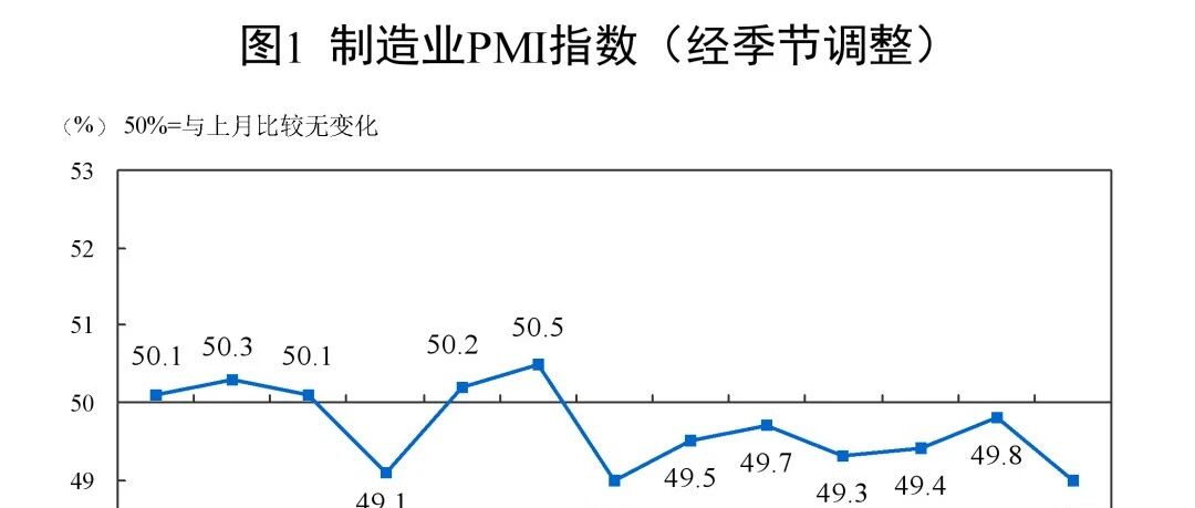 国家统计局:10月制造业PMI为49% 比上月下降0.8个百分点