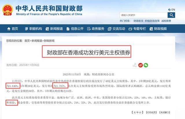最近,中国又干了件事,也没什么热度,但暗藏玄机,堪称一场没有硝烟的金融暗战。 最近,中国在香港发行了40亿美元的国债。一听40亿,你可能觉得也没多少啊。但诡异的是,就这么40 亿美元的债券,全球的资本却像疯了一样抢购,认购金额砸到了1180亿美元,超额30倍! 这感觉就像啥?就像你开个小店说要借点钱周转,利息还比隔壁世界首富开的银行低,结果一条街的人 揣着钱排成长龙,哭着求着要把钱借给你,反而对首富家的高息存款爱搭不理。 这画面,是不是有点魔幻?美国在一边看着,估计是打碎了牙齿往肚里咽,有火发不出。 先来个灵魂拷问:一个根本不缺钱的国家,为啥要低息借钱? 这得先搞清楚一个基本概念:发行主权债券,就是一个国家向全世界"借钱"。通常来说,你信用没那么 好,就得给高利息吸引人。比如某些国家,不给个10%以上的利息,根本没人敢借。 但中国这次给的利率是多少?3年期3.646%,5年期3.787%。这啥水平?这几乎击穿了美国自己的联邦 基金利率,比在美国存钱的利息还低! 这就离了大谱了。好比两个人找你借钱,一个家财万贯,现金流充沛(中国常年贸易顺差,手里大把美 元);另一个是著名老赖,债台高筑(美国国债30多万亿)。结 ...
