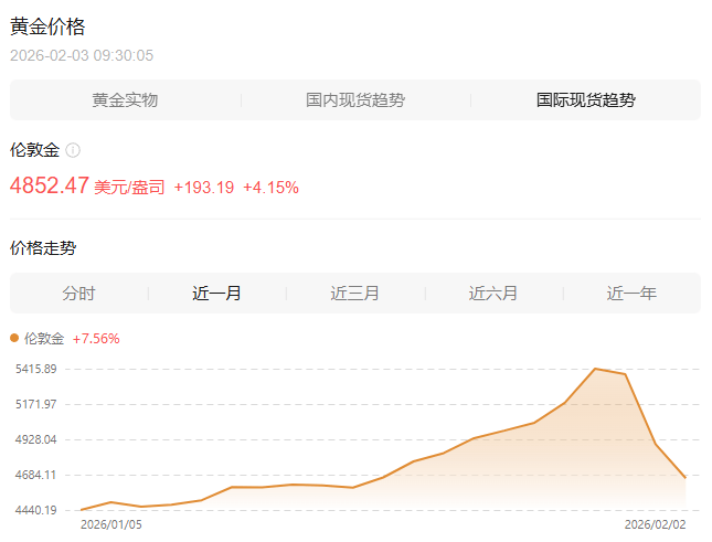 贵金属价格剧烈波动 - 2月3日,现货黄金价格日内走高,截至9:30涨至4852.47美元/盎司,日内涨幅4.15% [1] - 2月3日,现货白银价格持续反弹,截至09:34涨幅扩大至8%,报85.5美元/盎司;纽约期银日内涨超11%,报85.60美元/盎司 [1] - 黄金价格在开年飙升至历史新高后出现巨幅回调,1月30日遭遇20世纪80年代以来最大跌幅,2月2日现货黄金再次一度暴跌约10%,逼近4400美元/盎司关口 [3] - 黄金三十日波动率已攀升至44%以上,创2008年金融危机以来最高 [3] 白银基金遭遇极端事件 - 受国际银价大幅波动影响,国投白银LOF于2月2日复牌后封死跌停板 [4] - 鉴于白银国际主要市场价格出现显著波动,国投瑞银决定参考国际主要市场价格变动对基金资产进行合理重估 [4] - 受估值方式调整影响,国投白银LOF在2月2日单日净值跌幅达31.5%,创公募基金单日下跌历史纪录 [4] - 估值调整后,该基金二级市场价格溢价率达109.92% [4] - 有投资者表示,估值调整后两天已亏掉近一个月利润 [6] 机构对黄金后市观点 - 天风证券认为,短期内黄金或进入宽幅震荡,年内仍有望重回升浪,全球央行对黄金的长线配置需求将继续存在,充当价格的根本支撑 [8] - 五矿期货认为,美联储主席提名令市场宽货币预期受挫,历经回调后,预计金银价格将进入弱势盘整区间,短期难以出现趋势性上涨行情 [8] - 招商银行研究院认为,短期市场回调动能仍在累积,调整走势或进一步延续,中长期看黄金基本面逻辑稳固,牛市趋势未改,全年或有望挑战6500美元/盎司 [8] - 招商银行研究院指出,本轮黄金牛市的核心叙事已与过去20年不同,过去主要锚定流动性变化,当下更多聚焦于美元信用重塑与全球秩序重构 [8] - 首创期货研究院认为,当前金价走势最大的决定因素是金融属性,即投机因素和市场情绪,这导致对行情顶部的预判难度高,不确定性非常大 [10]