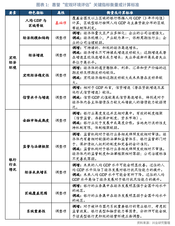 登录新浪财经APP 搜索【信披】查看更多考评等级 炒股就看金麒麟分析师研报,权威,专业,及时,全面,助您挖掘潜力主题机会! 国际评级机构,指标体系 在2025年9月发布的《国际评级机构银行业评级方法论考察——评级框架篇》报告中,我们对惠誉、标普和穆迪三大国际评级机构对银行业主体的信用评 级框架进行了考察。根据我们考察,三大评级机构对于银行业主体的评级主要基于三大维度:一是宏观经济环境,二是银行个体经营状况,三是外部支持 机制。本文将在此前研究的基础上,进一步聚焦三大国际评级机构,细化考察与银行主体信用评级相关的关键定量、定性指标以及相关指标的计算逻辑, 从而更好进行学习借鉴。宏观经济指标体系层面,三大评级机构均致力于衡量宏观经济波动和金融体系脆弱性可能引发的银行信用风险。因此,尽管各机 构的指标框架与评价方式存在一定差异,但均聚焦于以下几个核心维度: 惠誉对于银行母公司的支持评价体系同样围绕"能力"与"意愿"两大支柱构建。在支持能力层面,重点关注监管环境等外部环境对支持的可能障碍、母公司 财务实力与子公司所需支持的相对规模比较等。在支持意愿层面,惠誉则重点考量子银行在母公司中的地位、协同效果,以及子银行出险对 ...