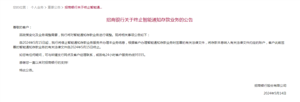 招行也宣布了!银行智能通知存款正在大面积退场