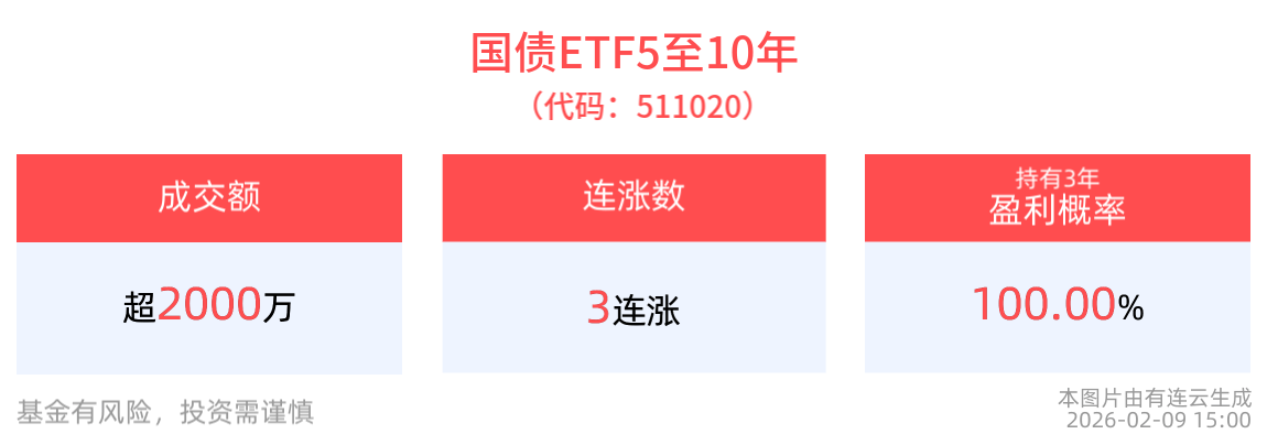 成交额超2000万元,国债ETF5至10年(511020)实现3连涨