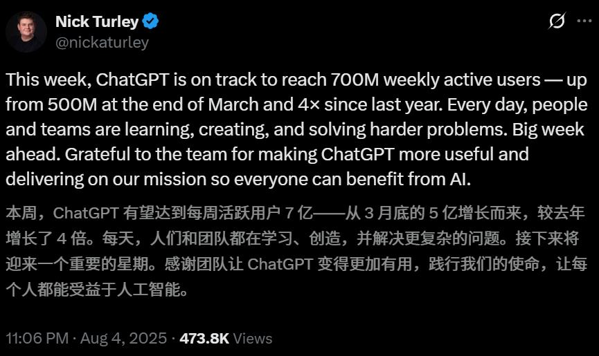 核心观点 - OpenAI未按市场预期发布GPT-5,而是公布了一项旨在优化产品健康使用的“防沉迷”新理念,其核心目标从追求用户停留时长转向衡量用户问题是否被高效解决,即“助你成事” [1][2][5][8] 产品数据与增长 - ChatGPT周活跃用户数突破7亿,这意味着全球约每10人中就有1人使用该应用 [1] - 其用户增长史无前例,从3月底的周活5亿增长至当前的7亿,用时不到半年,且较去年同期增长了4倍 [9] - 与传统平台相比,ChatGPT的用户“黏性”非常高 [9] 产品优化方向与理念 - 公司衡量成功的标准不再是用户停留时长或点击次数,而是用户是否解决了最初的问题并满意离开 [1][11] - 优化目标是帮助用户在解决问题、学习新知后能立刻回归生活,而非沉迷于屏幕前 [8][11] - 一个真正有用的产品应能精准捕捉需求,例如帮助准备困难对话、解读专业报告或理清混乱思路 [11][12] - 理想状态下,用户在产品上花费的时间越少,可能证明其效率越高、越成功 [12] - 通过智能体等新能力,产品可在用户不打开应用的情况下处理任务,如预约医生或分析邮件 [12] 产品健康使用与安全改进 - 公司承认产品并非完美,例如早期一次更新曾导致模型过于“讨好”用户,该问题已被修复 [13][14][15] - 发现GPT-4o模型在识别用户“妄想”或“情感依赖”等迹象方面存在不足,正在全力改进模型并开发新工具 [18] - 推出了“防沉迷”功能,当用户停留时间过长时,系统会发出休息提醒 [20][21] - 对于涉及人生重大抉择的问题,产品将引导用户深入思考而非直接给出答案,相关新交互模式即将上线 [22][23] - 公司正与全球专家合作以提升产品在用户出现精神或情感困扰时的响应能力 [24] - 具体合作包括:与来自30多个国家的90多名医生共同制定评估复杂对话的准则 [25];邀请全球顶尖人机交互研究人员和临床医生对风险识别方法进行反馈和测试 [26];组建由心理健康、青少年发展等领域权威专家构成的顾问小组 [27] 公司长期承诺 - “助你成事”是公司永不改变的终极目标 [28] - 公司将持续从真实应用场景中学习并进化其方法,其核心拷问是能否放心让所爱之人向ChatGPT寻求支持 [29]