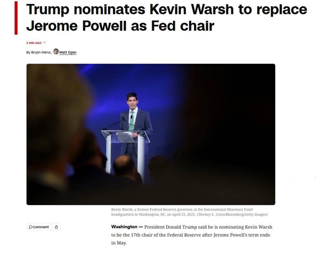沃什获提名美联储主席 专家:降息空间或在50个基点以上