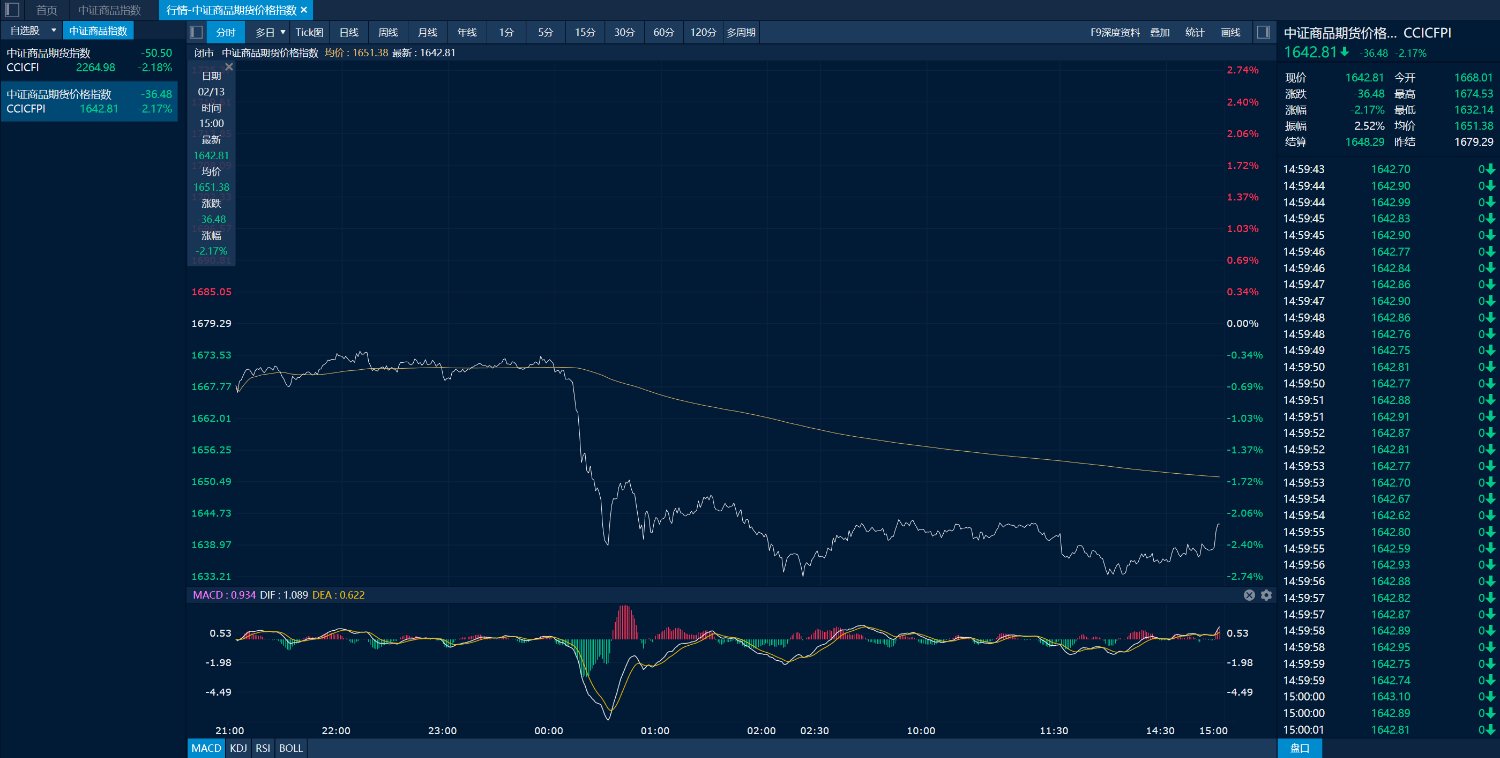 商品期货市场整体表现 - 2024年2月13日国内商品期货市场多数品种下跌,中证商品期货价格指数收报1642.81点,较前一交易日下跌36.48点,跌幅2.17% [1] - 中证商品期货指数收报2264.98点,较前一交易日下跌50.50点,跌幅2.18% [1] 涨幅居前品种及驱动因素 - 集运指数(欧线)期货主力合约领涨,涨幅为3.38%,反弹受情绪和资金面影响 [2] - 烧碱期货主力合约收涨2.91%,涨幅居前,其反弹受基本面支撑,包括液氯价格下降导致氯碱综合成本支撑走强、企业挺价意愿增强、现货价格小幅调涨以及假期运输受限担忧带动节前采购 [2] - 鸡蛋期货主力合约换月至2604合约后连续两日大幅走高,13日再涨2.20%,盘中刷新逾两个月新高,主要驱动是市场对远期行业产能出清、过剩压力缓和的预期 [3] - 其他上涨品种包括碳酸锂、豆一主力合约涨超2%,苹果、双胶纸、焦炭主力合约涨超1% [1] 跌幅居前品种及驱动因素 - 沪锡期货主力合约跌幅最大,收跌7.05%,主要受海外市场情绪驱动,包括市场对AI的担忧叠加宏观数据打压人气,美股三大指数重挫引发交易员抛售金属回补股市亏损 [4] - 沪银期货主力合约收跌5.52%,贵金属承压源于市场对美联储降息预期削弱、美元指数上涨,以及地缘风险缓和预期令其支撑松动 [1][4][5] - SC原油期货主力合约跌超4%,铂、沪镍、液化气、钯等主力合约跌超3% [1] - 国际铜、燃料油、铁矿石、沪铜等众多工业品主力合约跌超2%,盘面波动主要受隔夜海外风险资产全线下挫引发的市场情绪驱动 [1][4] 市场资金与持仓行为 - 烧碱期货在价格上涨同时出现空头主动离场迹象,主力合约单日净减仓超过3.4万手 [2] - 鸡蛋期货在假期前也出现资金减仓离场情况,这进一步强化了其当前主力合约价格的反弹力度 [3] - 临近春节长假,国内商品市场整体资金以减仓为主,节前避险特征明显 [4] 行业基本面与后市展望 - 烧碱行业面临仓单对盘面的压制,且后期需求存在不确定性,预计价格将以震荡为主 [2] - 鸡蛋养殖行业普遍预期2026年将从产能出清向回暖阶段过渡,但蛋价反弹后养殖户淘汰鸡和换羽的节奏仍需观察,给节后蛋价走势带来不确定性 [3] - 基本金属如锡,其现货市场因贸易商及下游企业多放假而维持清淡格局,预计社会库存将转增 [4] - 贵金属市场后续焦点将转向美国CPI数据,尽管机构对其长期走势维持乐观,但建议因春节假期国外不确定性较高而谨慎参与 [5]