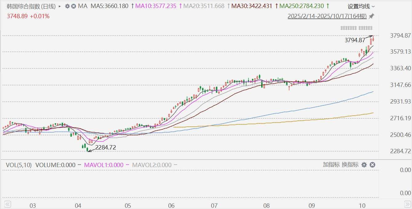 韩股收涨0.01%报3748.89点,再创收盘历史新高!韩国综合指数年内累涨56.24%