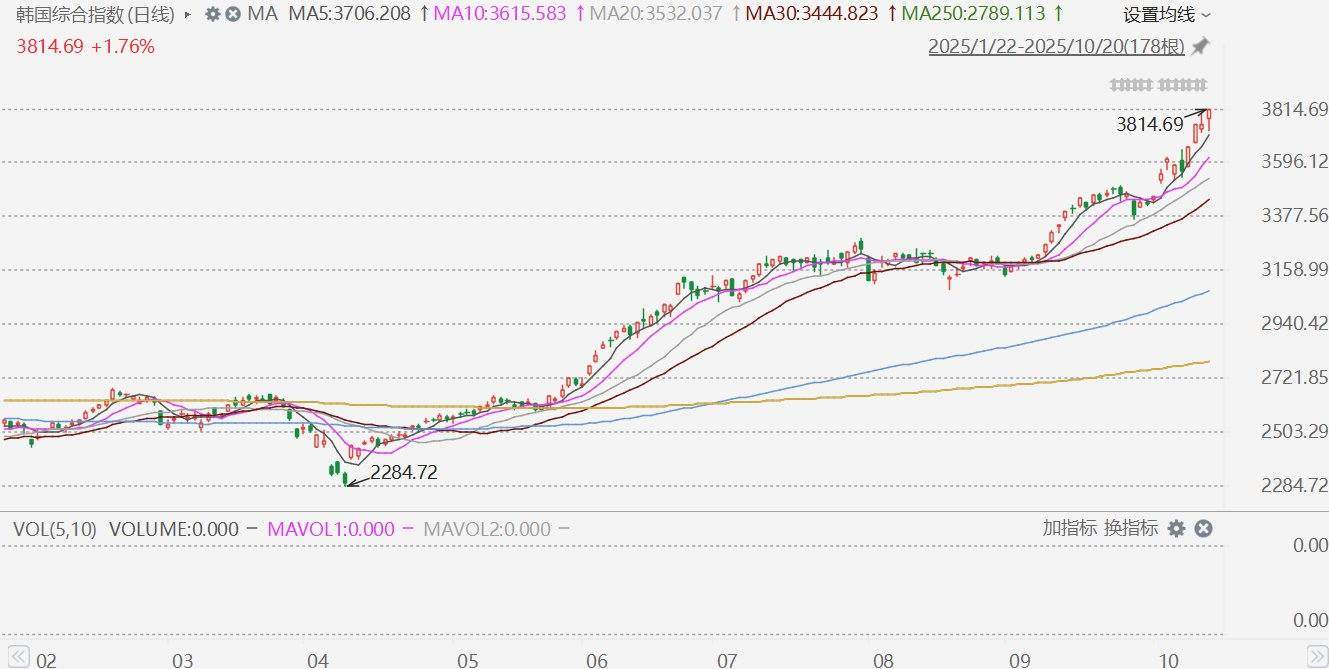 韩国综合指数收涨1.76%报3814.69点,收在历史最高位!韩股年内累涨58.98%
