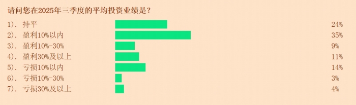 | 1). 3900点附近 | 23% | | --- | --- | | 2). 3800点附近 | 38% | | 3). 3700点附近 | 11% | | 4). 3600点附近 | 12% | | 5). 3500点附近 | 16% | | 1). 估值合理 | 26% | | --- | --- | | 2). 低估 | 24% | | 3). 高估 | 7% | | 4). 部分细分板块具有投资价值 | 17% | | 5). 不清楚 | 26% | (感谢申万宏源证券、东北证券相关营业部对本调查的支持。上图为部分调查结果) 周恒 制图 □ 三季度,A股主要指数强势反弹,连续突破前期高点。55%的受访投资者表示在第三季度实现盈利, 个人投资者盈利水平连续两个季度出现上升 □ 股市赚钱效应回升,叠加无风险利率下行,推动资金向权益资产转移,个人投资者的证券资产占金融 资产的比重已连续两个季度上升 □ 在创业板指数三季度大涨逾50%的背景下,个人投资者持续关注科技成长股板块,赚钱效应进一步强 化了科技股的主导地位 □ 逾七成受访投资者看涨四季度A股行情,较前一期调查结果进一步上行。但从10月底上证综指 ...