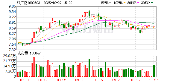 ST广物(600603)即将迎来"摘帽"时刻。 10月27日晚间,ST广物公告称,上海证券交易所已同意撤销公司股票其他风险警示,公司股票将于 2025年10月28日停牌一天,自2025年10月29日起复牌交易,并撤销其他风险警示,股票简称由"ST广 物"变更为"广汇物流"。 按照规定,撤销其他风险警示后,公司股票交易的日涨跌幅限制由5%变为10%。 (文章来源:证券时报) 按照相关规定,广汇物流于2024年9月3日被实施其他风险警示,股票简称变更为"ST广物"。2024年10 月12日,公司收到中国证监会就前述事项下发的《行政处罚决定书》。 近一年多来,ST广物积极采取措施,消除前述事项带来的不利影响。截至目前,公司已就行政处罚决 定所涉事项进行追溯重述,相关事项整改完毕。与此同时,公司未收到投资者索赔事项相关的诉讼立案 材料,未达到计提预计负债的条件。 今年10月,ST广物收到《行政处罚决定书》已满12个月,申请撤销其他风险警示的时间窗口已至。10 月13日,公司在第一时间审议通过向上交所申请撤销其他风险警示相关议案。 伴随着本次其他风险警示撤销,ST广物或将倾注更多精力在公司主业发展领域。 目前,ST广物 ...