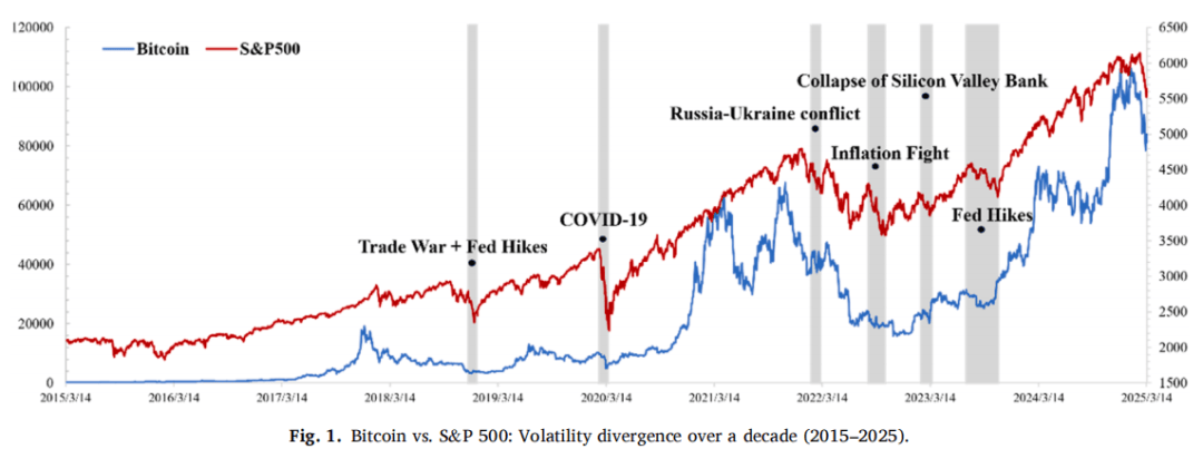 文章核心观点 - 在特朗普2.0时代(2025年及以后),比特币的市场定位和避险属性发生了根本性转变,其与黄金的相似性消失,并从一个相对独立的投机工具转变为与主流金融市场关联性增强的机构化资产类别 [1][2][4][6] - 在特朗普2.0之前,比特币与黄金均在中期危机(如“黑天鹅”事件或行业性崩盘)中表现出避险属性,但作用机制不同:比特币通过市场隔离缓解风险,黄金则依赖其内在价值保值功能 [2][6][20] - 特朗普政府的积极政策(如2024年比特币现货ETF获批及2025年提出的比特币储备主张)推动了比特币价格突破100,000美元,并加速了其向主流认可资产的演变,削弱了其传统避险特征 [1][2][4][22] 比特币与黄金的避险属性演变 - **特朗普2.0之前的属性**:在全样本期(2015年3月17日至2025年5月9日),比特币与黄金在中期危机(如新冠疫情、2022年硅谷银行倒闭)中均表现出避险属性,即在标普500指数下跌时,二者与股市呈反向变动 [6][24][25] - **作用机制差异**:比特币的避险性源于其与整体市场的低联动性(风险净接收者,Net指标为负但绝对值小),而黄金则通过向其他资产溢出风险(风险净输出者,Net指标为正)来维持价格稳定 [6][20] - **特朗普2.0时期的属性变化**:在2025年1月1日至5月9日期间,比特币与黄金的相似性消失,比特币在长期和短期内与标普500同向变动,更接近高风险成长型资产;而黄金则恢复为主要风险承接者,与股市呈反向关系 [22][28][31] 市场风险传染与关联性分析 - **全样本期风险传染**:比特币在所有资产中承受的风险水平最低(“From”指标低),且风险溢出程度也最低(“To”指标低),表明其与传统市场联动性较低,具备分散化投资潜力 [19] - **特朗普2.0时期风险传染加剧**:在长期维度,总体风险传染强度急剧上升至240.34,表明各类资产对政策与地缘政治冲击的敏感性显著增强 [21][22] - **比特币关联性转变**:在特朗普2.0时期,比特币在长期维度与其他资产的相关性上升,表明其正从散户主导的投机市场转向机构投资者显著参与的主流资产类别,并由“避险资产”向“风险资产”转变 [22][23] 研究方法与数据 - **研究时段**:数据覆盖2015年3月17日至2025年5月9日的日度数据,选择2015年为起点是因之前市场流动性极低,数据不稳定 [12] - **核心方法**:采用频域分解联通性方法(Baruník and Křehlík, 2018)将风险传染分解为短期(1-3个交易日)、中期(4-7个交易日)和长期(超过7个交易日)成分,并结合带滤波的分位数Granger因果检验(Troster, 2018)来分析避险属性 [13][14][15][17] - **避险属性判定**:根据Baur和McDermott(2010)的定义,当某一资产在较低分位数(如下行市场)条件下对目标资产的预测系数显著为负时,被视为具有避险属性 [13][16] 对投资者与行业的启示 - **投资策略调整**:在特朗普2.0时代,比特币与主流资产(如股票)相关性增强,投资者应避免在长期内将其视为可靠的对冲工具,其风险特征更接近高贝塔资产,需据此调整资产配置 [31][33][34] - **监管关注点**:比特币与传统金融市场(股票、债券、外汇)之间的风险传染显著增强,监管机构需加强对跨市场风险敞口、杠杆水平以及潜在反馈回路的监测与宏观审慎监管 [23][31][34] - **市场结构演变**:加密货币市场正从相对孤立的体系转变为机构投资者显著参与、获得主流认可的新型资产类别,这一结构性变化影响了比特币的定价和行为模式 [22][31][32]