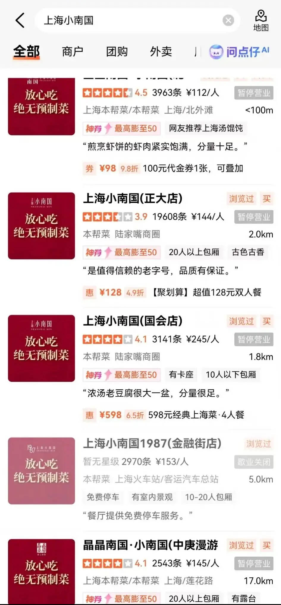 上海小南国近20家门店集体闭店,年夜饭订金与储值卡余额无人处理