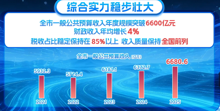 北京市2025年财政收支执行情况 - 2025年北京市一般公共预算收入为6680.6亿元,同比增长4.8%,增速高于2024年的3.1%,与年初预期(4%左右)相符 [3] - 2025年北京市一般公共预算收入增速(4.8%)高于全国地方平均水平(前11个月同比增长2.2%),且与当地GDP增速(5.4%)相近 [3][5] - 财政收入质量高,税收收入占一般公共预算收入比重达86.5%,略高于2024年的85.9%,预计继续保持全国前列 [3][5] - 2025年北京市政府性基金收入为2193.9亿元,同比增长4.7%,止住了近年来的持续下跌趋势,且好于预期 [6][7] 北京市2025年经济发展与财源结构 - 2025年北京市地区生产总值(GDP)为5.2万亿元,同比增长5.4%,高于全国增速0.4个百分点 [5] - 高精尖产业财源贡献稳步提升,高新技术企业、数字经济核心产业、独角兽企业的财源贡献度分别较2020年提升7.6%、7.4%、6.7% [5] - 近些年北京市一般公共预算收入规模稳居全国第六,预计2025年继续保持此排名 [5] 北京市2025年财政支出情况 - 2025年北京市一般公共预算支出为8401.9亿元,与上一年基本持平,按可比口径计算增长4.8% [6] - 财政支出优先保障民生,民生投入占全市一般公共预算支出比重持续保持在八成以上 [6] - 2025年北京市政府性基金支出为3217亿元,同比增长6% [7] 北京市2026年财政收支预算预期 - 2026年北京市一般公共预算收入预计为6950亿元,同比增长4%左右,与2025年初预期增速一致,并与2026年GDP预期增速(5%左右)相近 [7] - 2026年北京市政府性基金收入预计为2194.5亿元,与上年基本持平 [7] - 2026年北京市一般公共预算支出预计为8600.2亿元,同比增长2.4%,增速高于2025年实际支出增速(约0.1%) [7] - 2026年北京市政府性基金支出预计为2700.2亿元 [7]