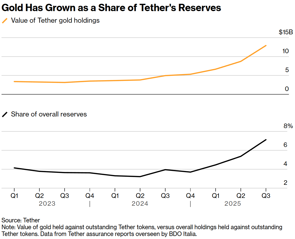 隐秘金库挑战华尔街:万亿稳定币巨擘Tether核掩体囤金140吨 目标“全球最大黄金央行之一”
