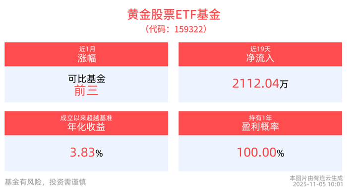 黄金股票ETF基金(159322)接近翻红,前期调整幅度已充分!