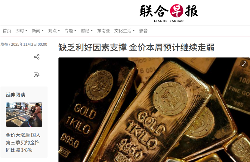 另据世界黄金协会发布数据显示,三季度黄金投资需求激增至537吨,同比增长47%。前三季度,中国零售黄金投资需 求达313吨,为2013年以来的最高水平。世界黄金协会认为,当前的市场环境显示黄金仍有进一步上行的空间。 【环球网财经综合报道】近日,财政部、国家税务总局发布关于黄金有关税收政策的公告,自11月1日起实施,执行 至2027年12月31日,适用时间以发生实物交割出库的时间为准。 业内人士分析表示,政策是对现有黄金市场政策的进一步完善,可以更好区分黄金的商品和金融属性;且本次政策调 整主要对交易所购买黄金的增值税政策进行了适当调整,预计调整后黄金市场消费及投资环境将更为透明和健康。 《联合早报》发文称,受美国联邦储备局降息立场趋于谨慎,以及中美贸易谈判进展良好影响,黄金的避险吸引力未 能得到提振,现货金价上周进一步下跌逾2%,本周预计持续疲弱。Asset Strategies International总裁兼首席运营官查坎 (Rich Checkan)认为,尽管黄金的长期上行趋势不变,但短期内缺乏冲刺新高的动力。 ...