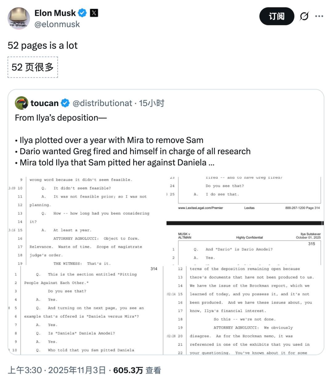 马斯克、奥特曼X上再开撕,Ilya最新52页证词曝光,抖出OpenAI更多内幕