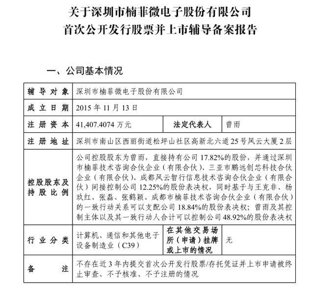 公司概况与IPO进展 - 深圳市楠菲微电子股份有限公司已向深圳证监局提交IPO辅导备案,辅导券商为中信建投 [1] - 公司成立于2015年11月13日,注册资本为4.14074074亿元,法定代表人为曾雨 [2] - 公司控股股东为曾雨,其直接持有公司17.82%的股份,并通过三家合伙企业间接控制12.25%的股份表决权,与一致行动人合计可控制公司48.92%的股份表决权 [2][5] - 公司属于计算机、通信和其他电子设备制造业,主要从事以太网数据交换、智能网卡、PHY、PCIe Switch等芯片和模块的设计、生产、销售和服务 [2] 业务与产品布局 - 公司研发和销售总人数近400人,其中研发人员占比85%以上,在深圳、北京、上海等多地设有研发和运营销售中心 [3] - 公司已实现千兆/万兆工业以太网SOC交换芯片、4口千兆PHY芯片、二层千兆以太网交换芯片、先进工艺以太网交换以及PCIe Switch芯片等产品的量产 [3] - 2023年,公司中端交换芯片年出货量突破100万颗;2024年完成全国产先进工艺芯片组量产;2025年拓展AI智算互连业务 [3] - 公司专注超节点系统的板间互联(加速卡Scale-up网络),其Alink Switch芯片兼容UALink开放标准,最大可支持100+加速卡的超节点互联 [3][4] - 公司通过PCIe 6.0交换芯片、Alink Switch芯片、高性能智能网卡芯片构建超节点系统,其中智能网卡芯片将支持400G/800 Gbps接口带宽及RDMA/UEC等技术 [4] 融资与股东结构 - 公司共经历8轮融资,最近一期于2025年9月完成的C轮融资总金额超10亿元 [6] - C轮融资资金将重点用于加码新一代AI互联芯片的研发投入,并补充公司流动资金 [6] - 公司股东中包含多家国有资本,如深圳市中孵宏途投资合伙企业(持股6.0613%)、常州武南汇智创业投资有限公司(持股1.7654%)、中国互联网投资基金(持股1.4897%)、芜湖信沪创业投资合伙企业(持股1.4617%) [5] - 2025年12月,上市公司菲菱科思公告拟通过合伙企业间接参投楠菲微,该合伙企业认缴出资总额4080万元 [7] - 2026年1月,相关投资基金已完成备案并对楠菲微进行增资,增资完成后出资金额为1.19亿元,占楠菲微注册资本的1.8195% [8]